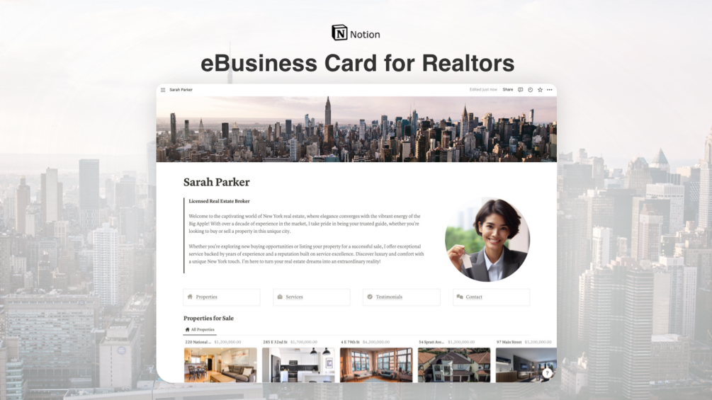 In the competitive world of real estate, you have to stay ahead of the curve by surprising clients and making life easier for customers. Tailored to meet the specific needs of real estate agents, this template offers a centralized hub for all your crucial information, effortlessly accessible from any device and at any time to anyone.